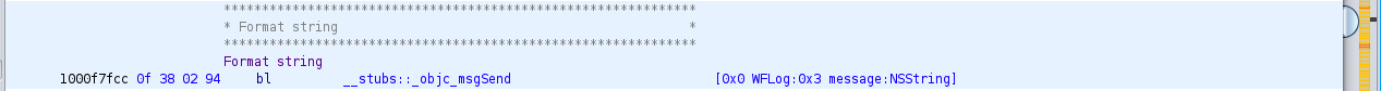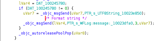 As Zecops explained in their article, this format string is different from the usual ones. Since it uses [NSString stringWithFormat:], proper to Apple, and since Apple has removed the support for“%n”, we can’t use the latter to write into the memory. However, the service is written in Objective-C and we can use “%@” so that the function tries to print an Objective-C object.