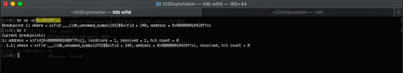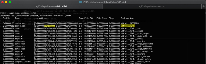 Now all of what was required to be done to set the break point was to start the debug session, we used the image dump sections wifid command on lldb to get the base address of the __TEXT section.