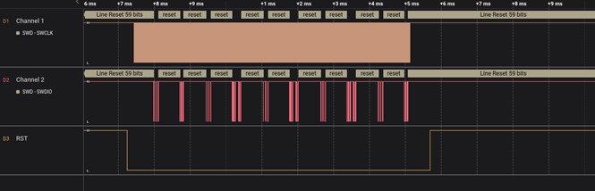 Figure 4: Use of a logic analyser to monitor the traffic between the ST-link and the microcontroller
