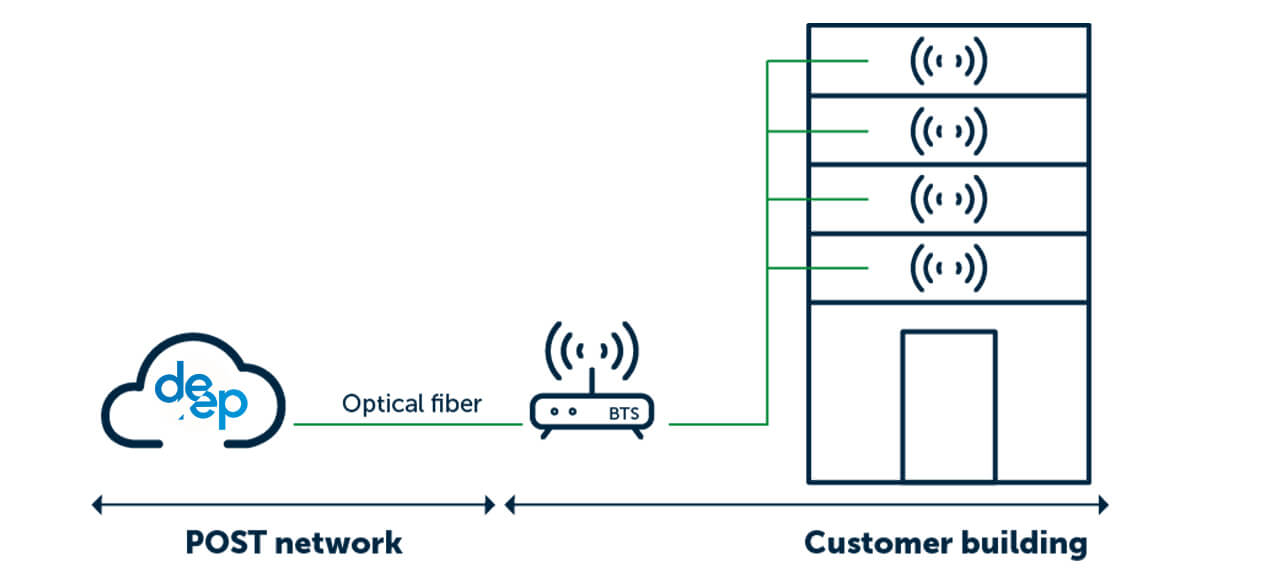 Extension of the public mobile network in your company premises for a homogeneous and quality coverage on all your surfaces.
