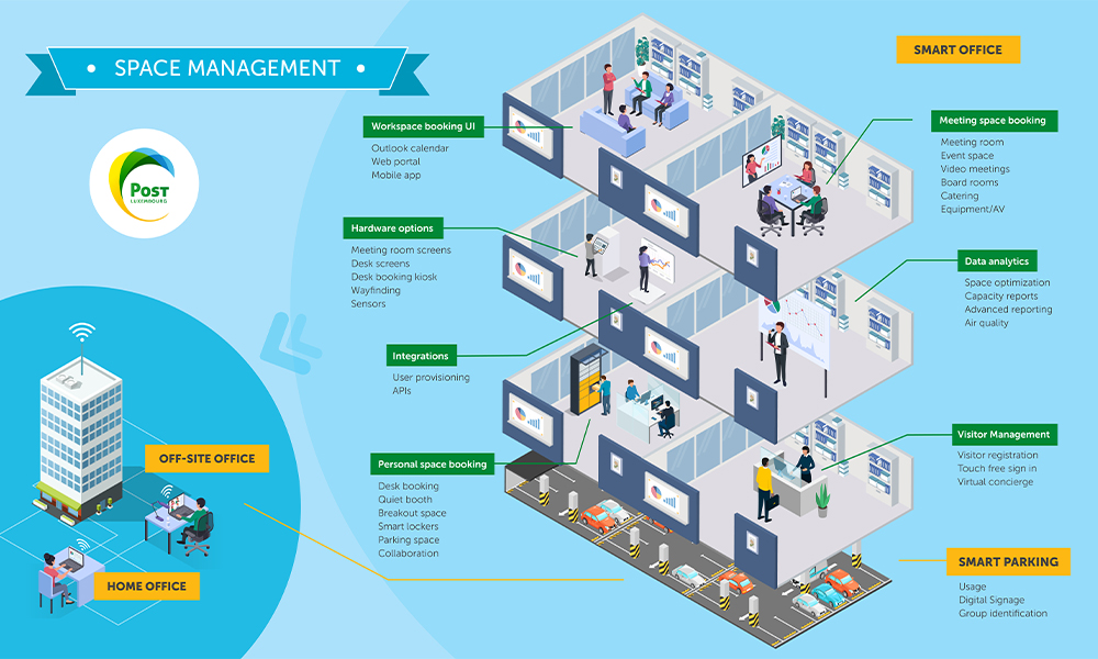 POST's new headquarters, HELIX, located opposite Luxembourg station, includes a host of technological choices to enhance the experience of visitors and employees alike.