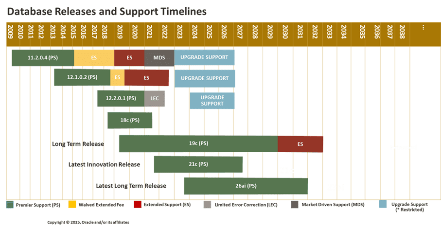 La 26ai n'est pas qu'une innovation, c'est votre futur standard. Voici les cycles de vie annoncés pour piloter votre trajectoire de migration :